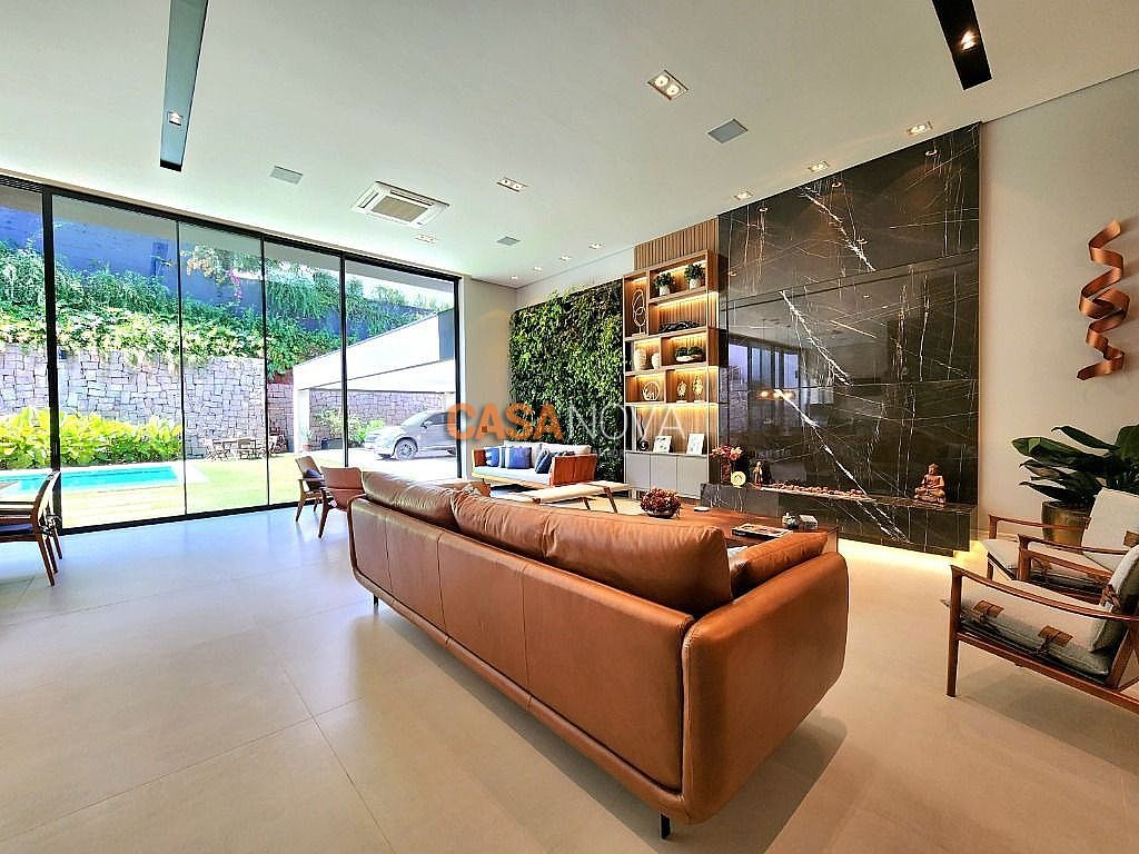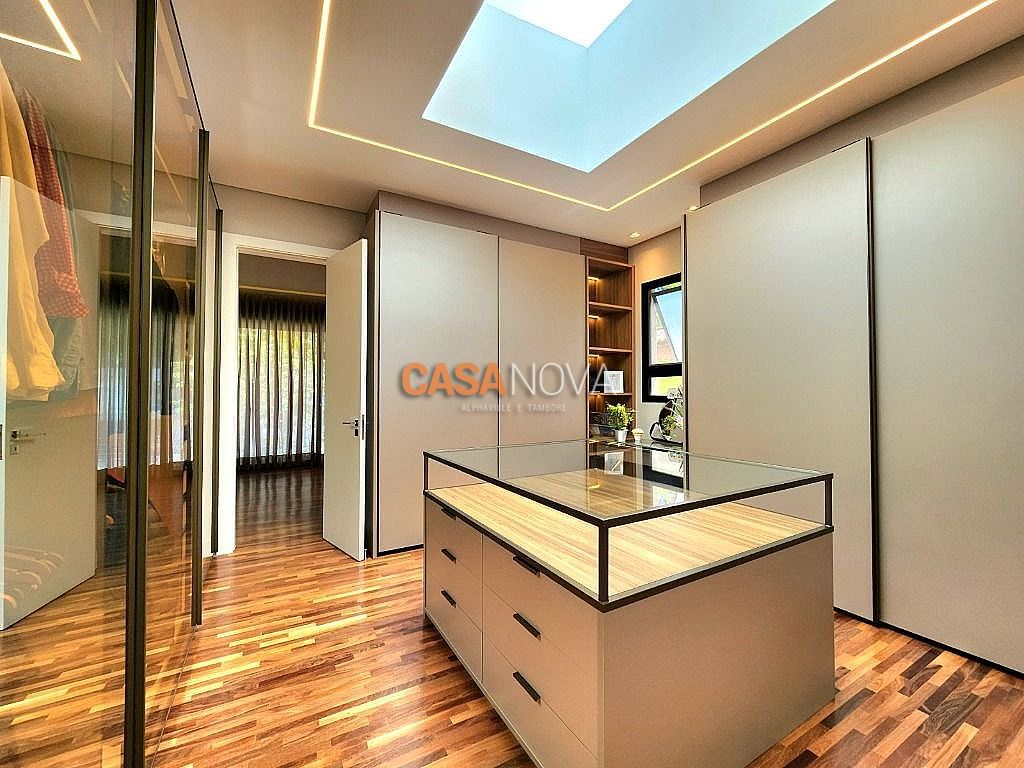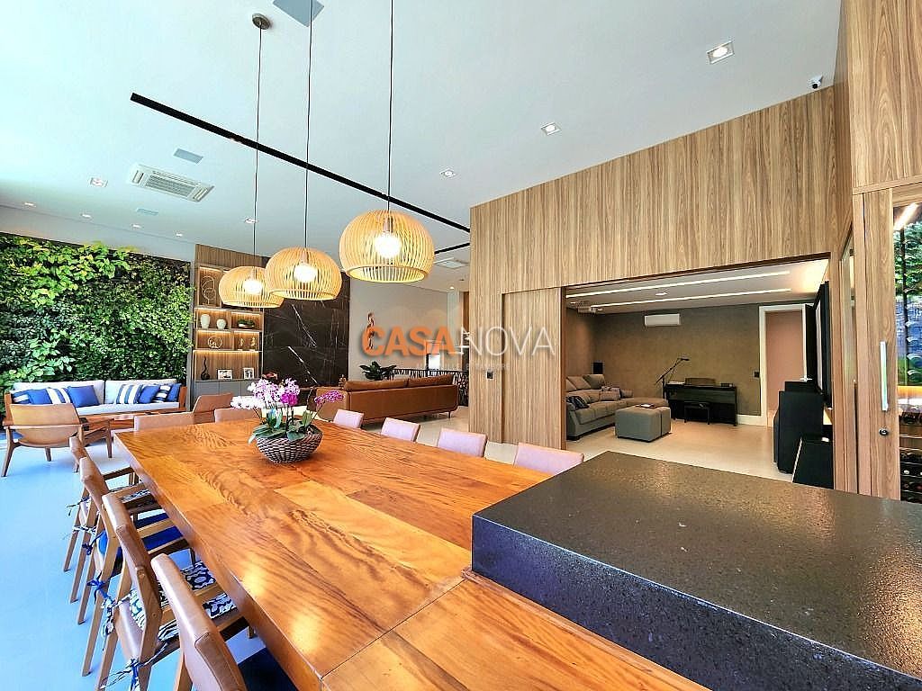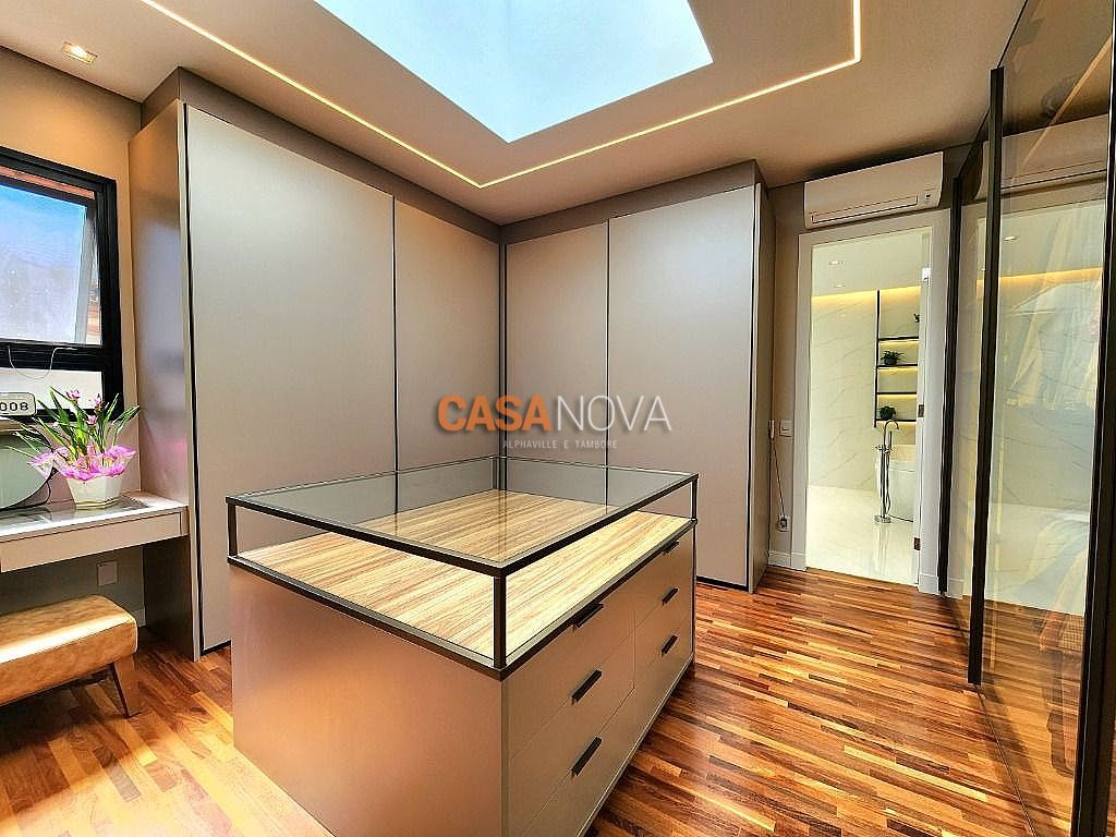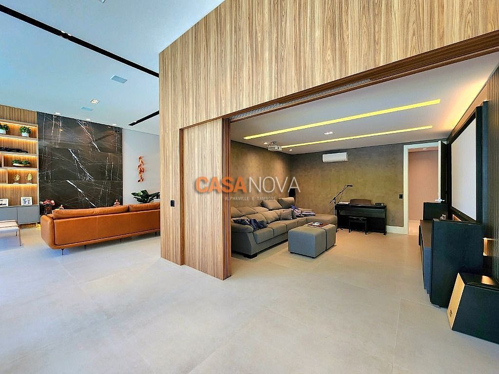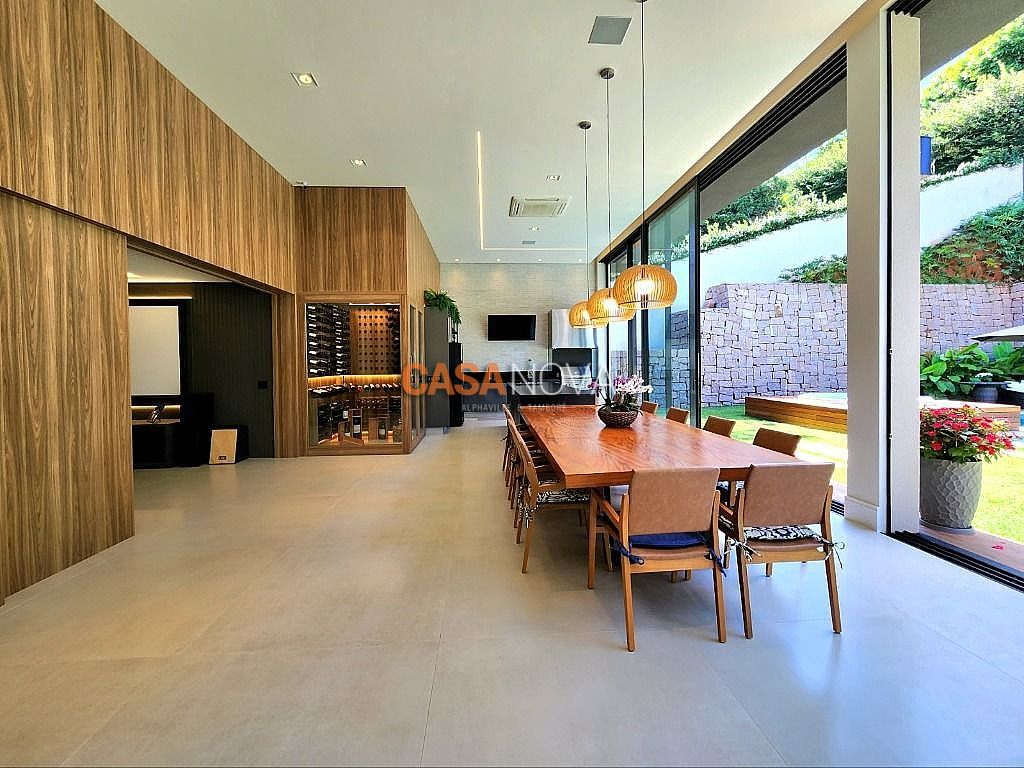 Linda Casa em Tamboré, nova, com 800m² de construção em 1280m2 de terreno, projeto arquitetura e decoração da Leonice Alves, 5 suítes sendo 4 com closet e 2 com banheiras, ar-condicionado em todos os ambientes, living com lareira e jardim vertical, sala de jantar, adega climatizada para 500 garrafas, escritório, home theater, cozinha toda equipada com Viking, ateliê, varanda gourmet equipada com Viking, piscina aquecida, SPA Versati, sauna seca, tocheiro externo, garagem coberta para 5 carros.