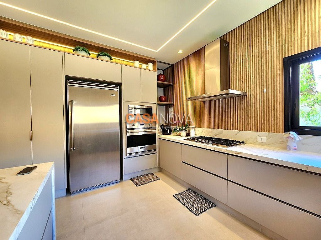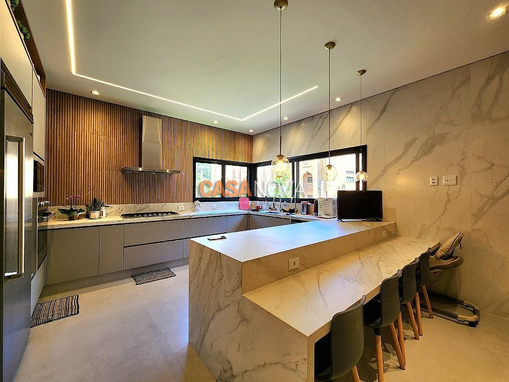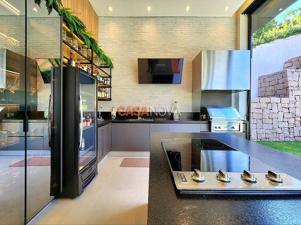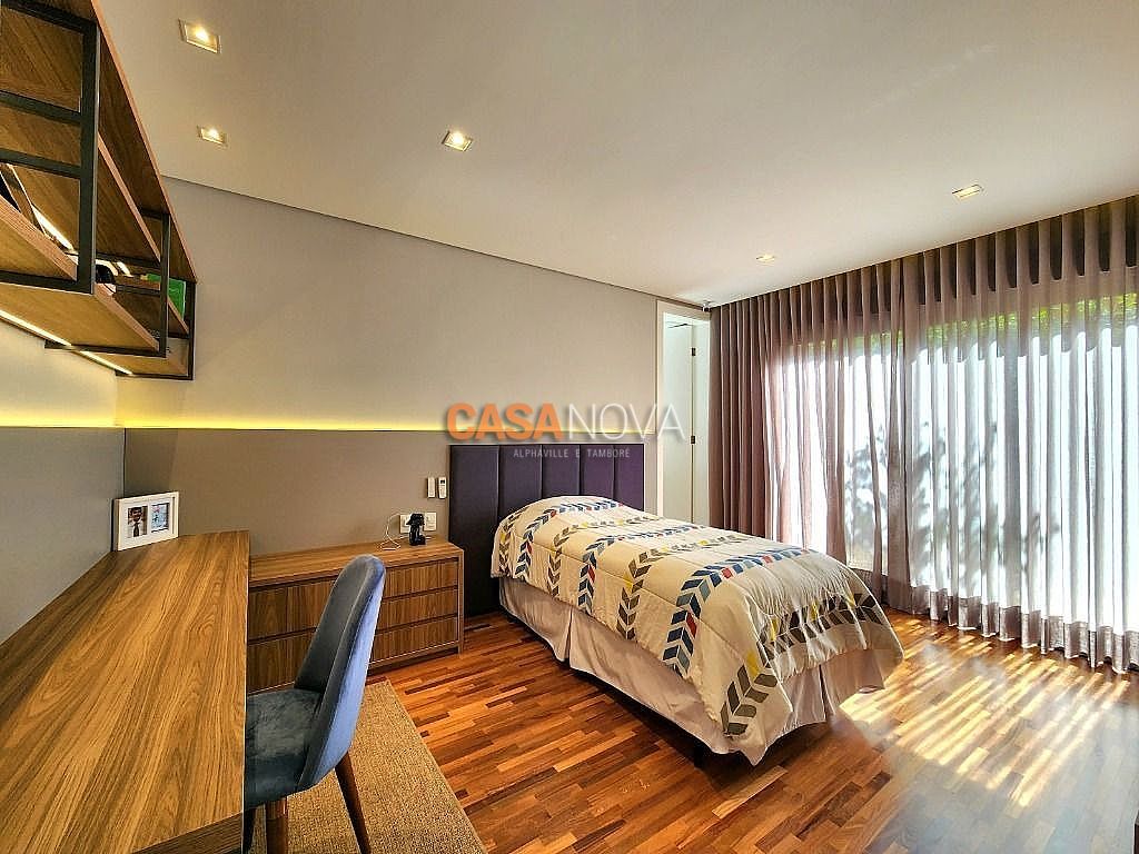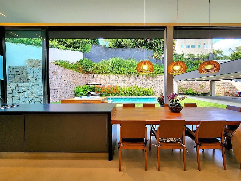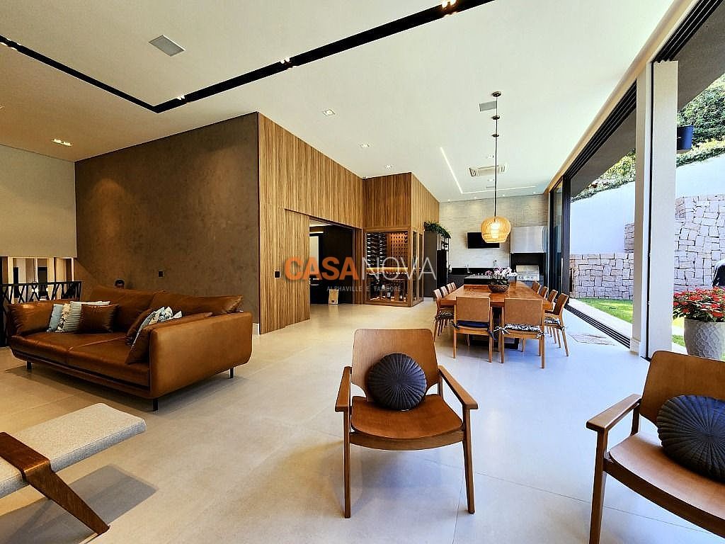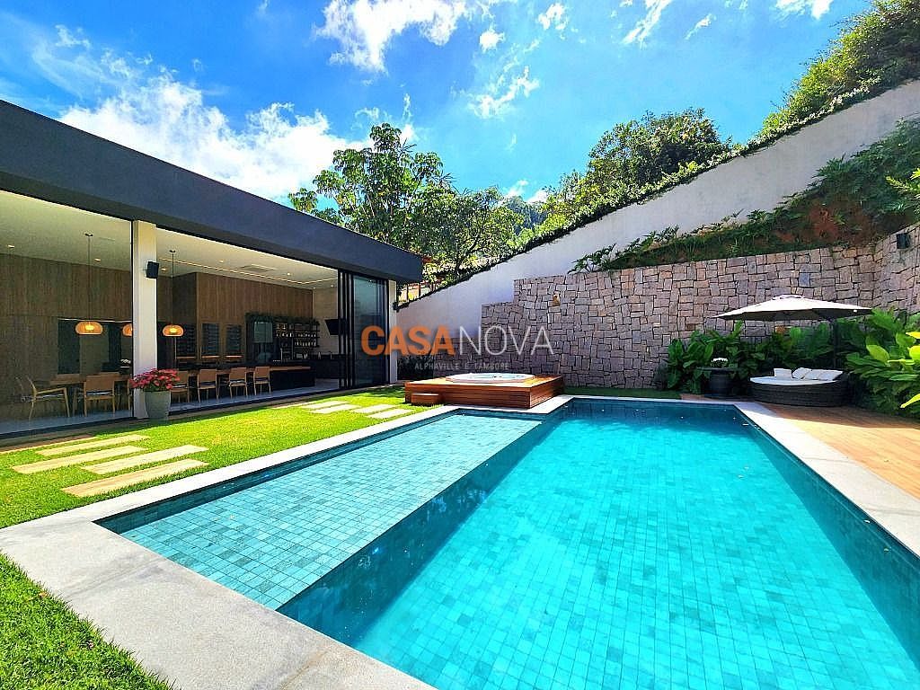Linda Casa em Tamboré, nova, com 800m² de construção em 1280m2 de terreno, projeto arquitetura e decoração da Leonice Alves, 5 suítes sendo 4 com closet e 2 com banheiras, ar-condicionado em todos os ambientes, living com lareira e jardim vertical, sala de jantar, adega climatizada para 500 garrafas, escritório, home theater, cozinha toda equipada com Viking, ateliê, varanda gourmet equipada com Viking, piscina aquecida, SPA Versati, sauna seca, tocheiro externo, garagem coberta para 5 carros.