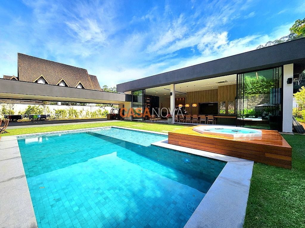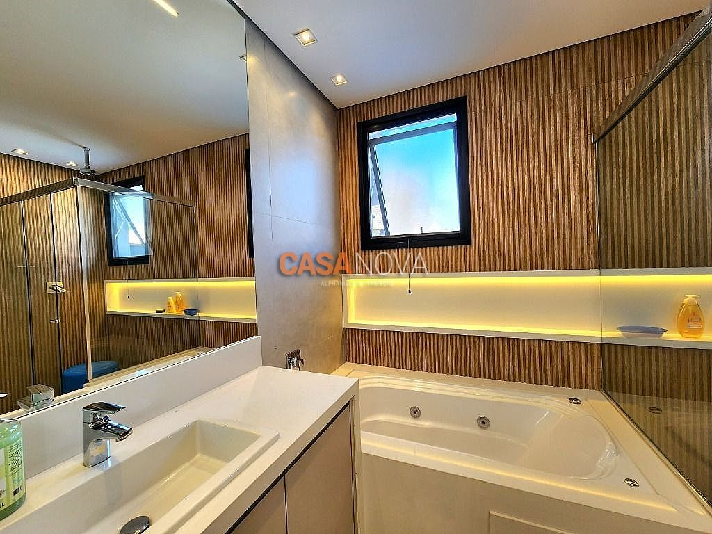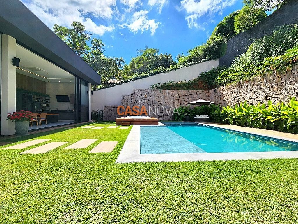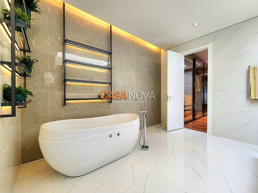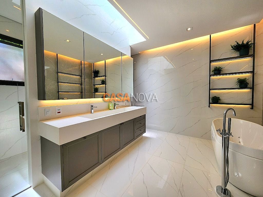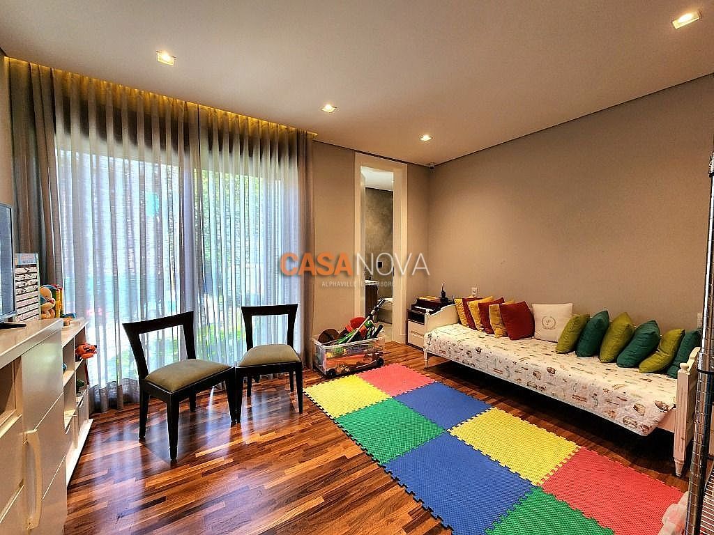 Linda Casa em Tamboré, nova, com 800m² de construção em 1280m2 de terreno, projeto arquitetura e decoração da Leonice Alves, 5 suítes sendo 4 com closet e 2 com banheiras, ar-condicionado em todos os ambientes, living com lareira e jardim vertical, sala de jantar, adega climatizada para 500 garrafas, escritório, home theater, cozinha toda equipada com Viking, ateliê, varanda gourmet equipada com Viking, piscina aquecida, SPA Versati, sauna seca, tocheiro externo, garagem coberta para 5 carros.