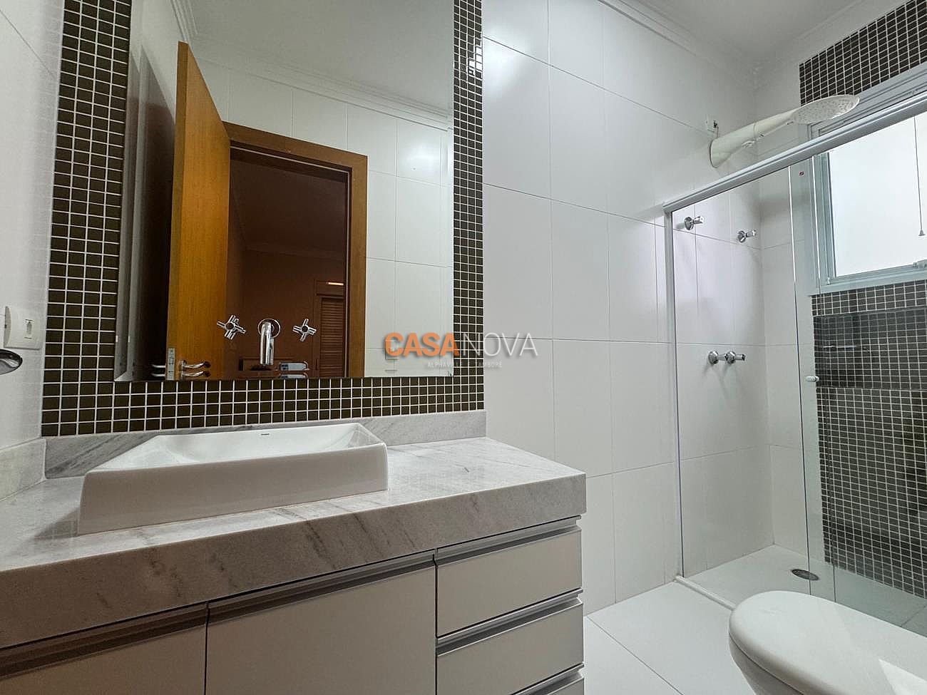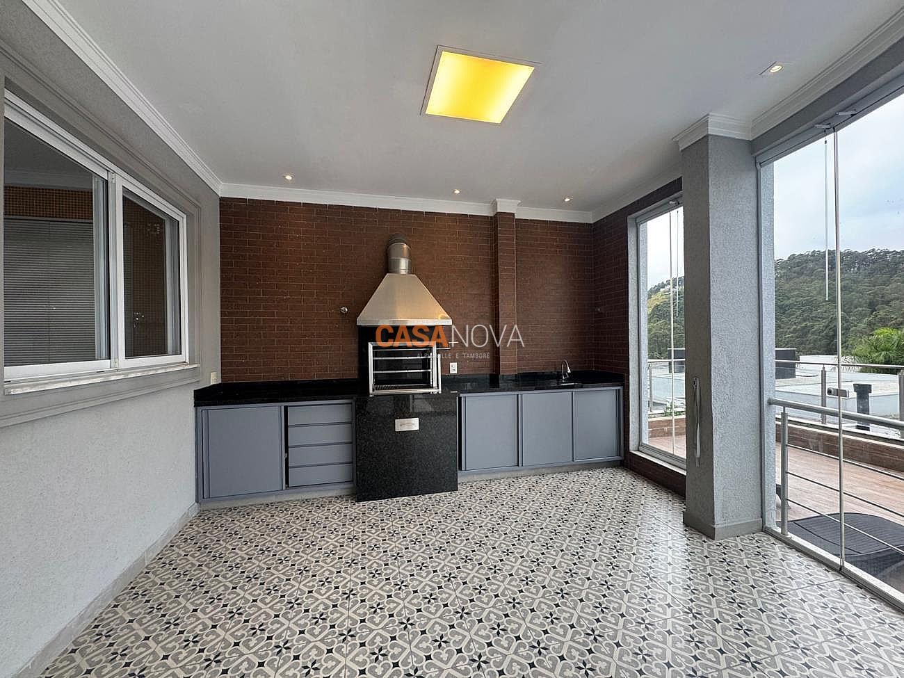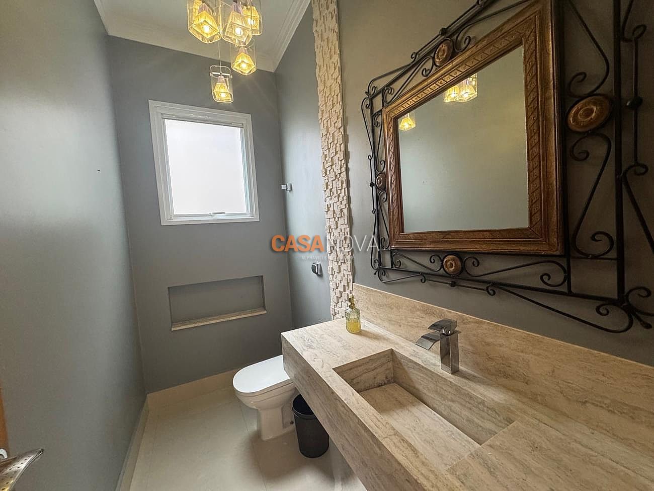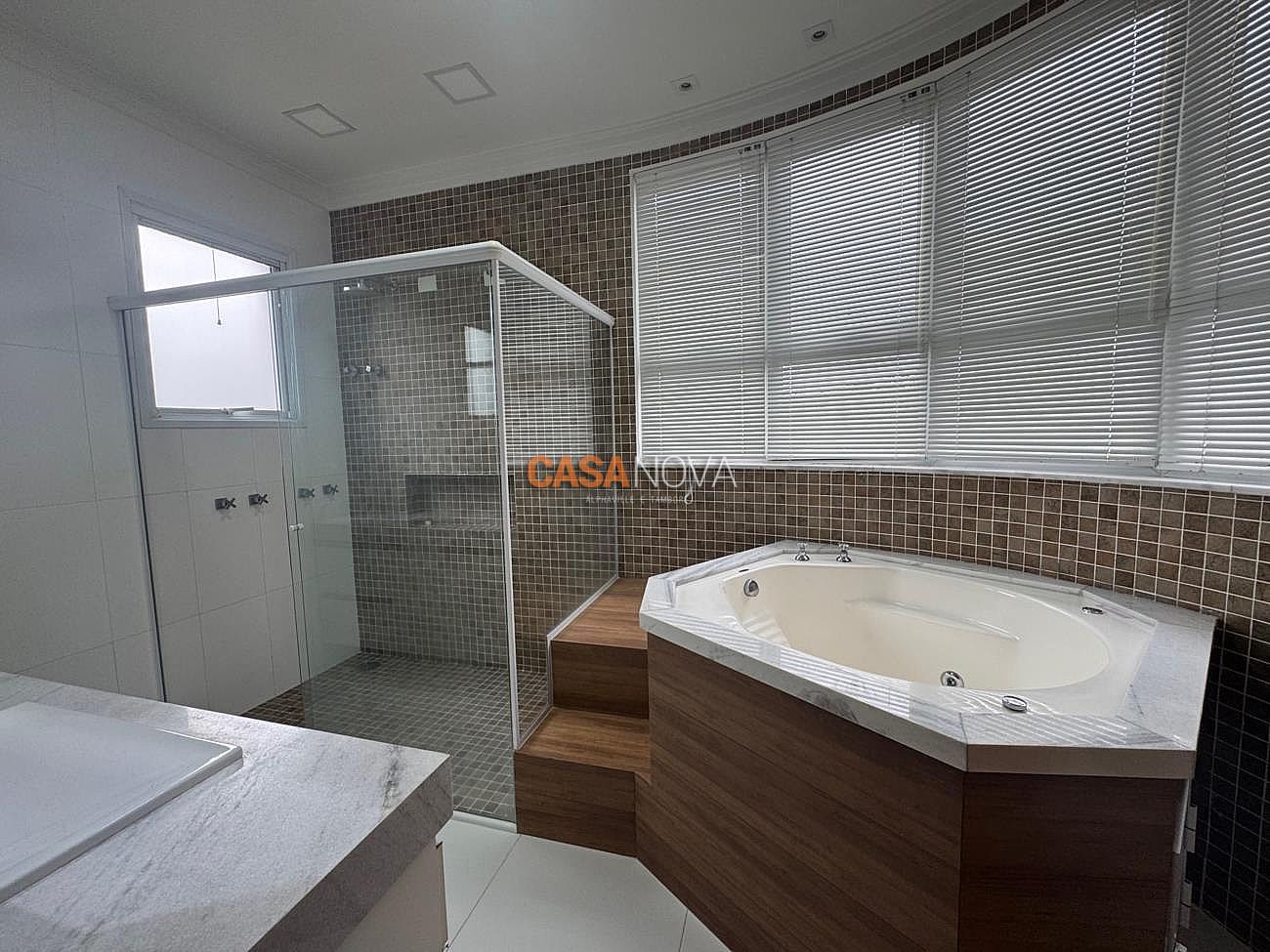 Conta com aquecimento solar, porcelanato italiano no living, mármore fotossensível (que acende à noite).